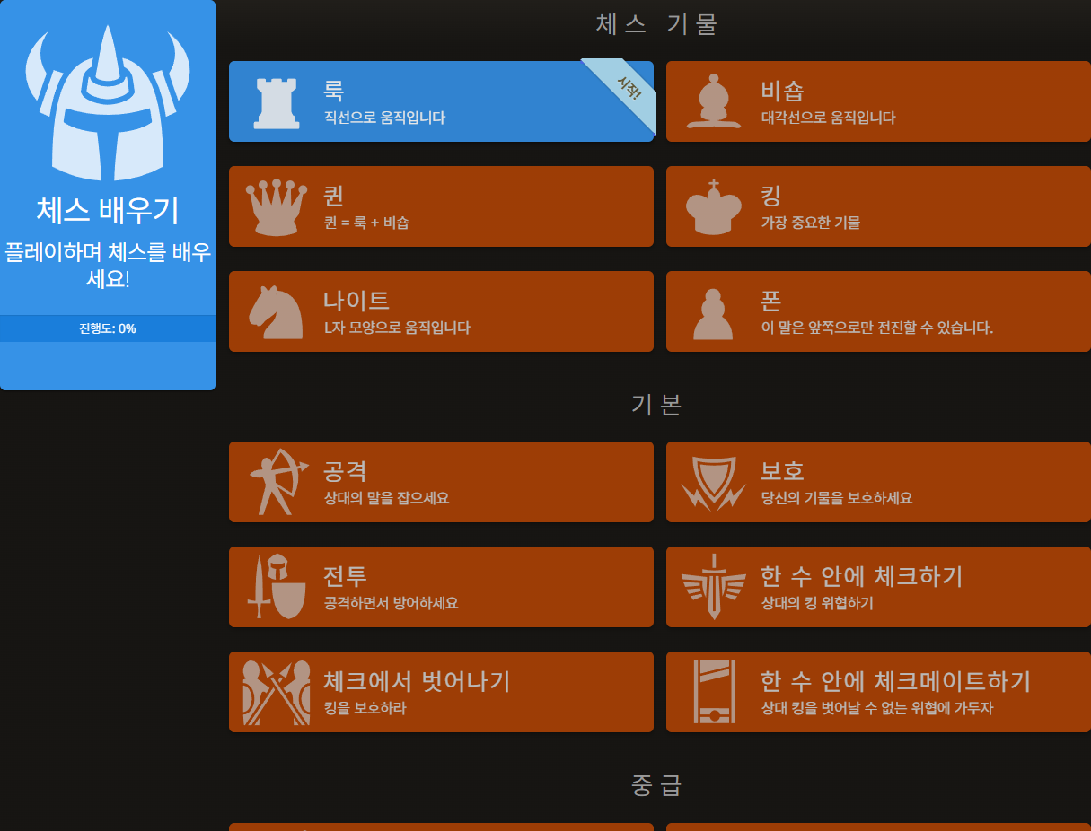 Lichess.org의 학습 기능도 보겠습니다.