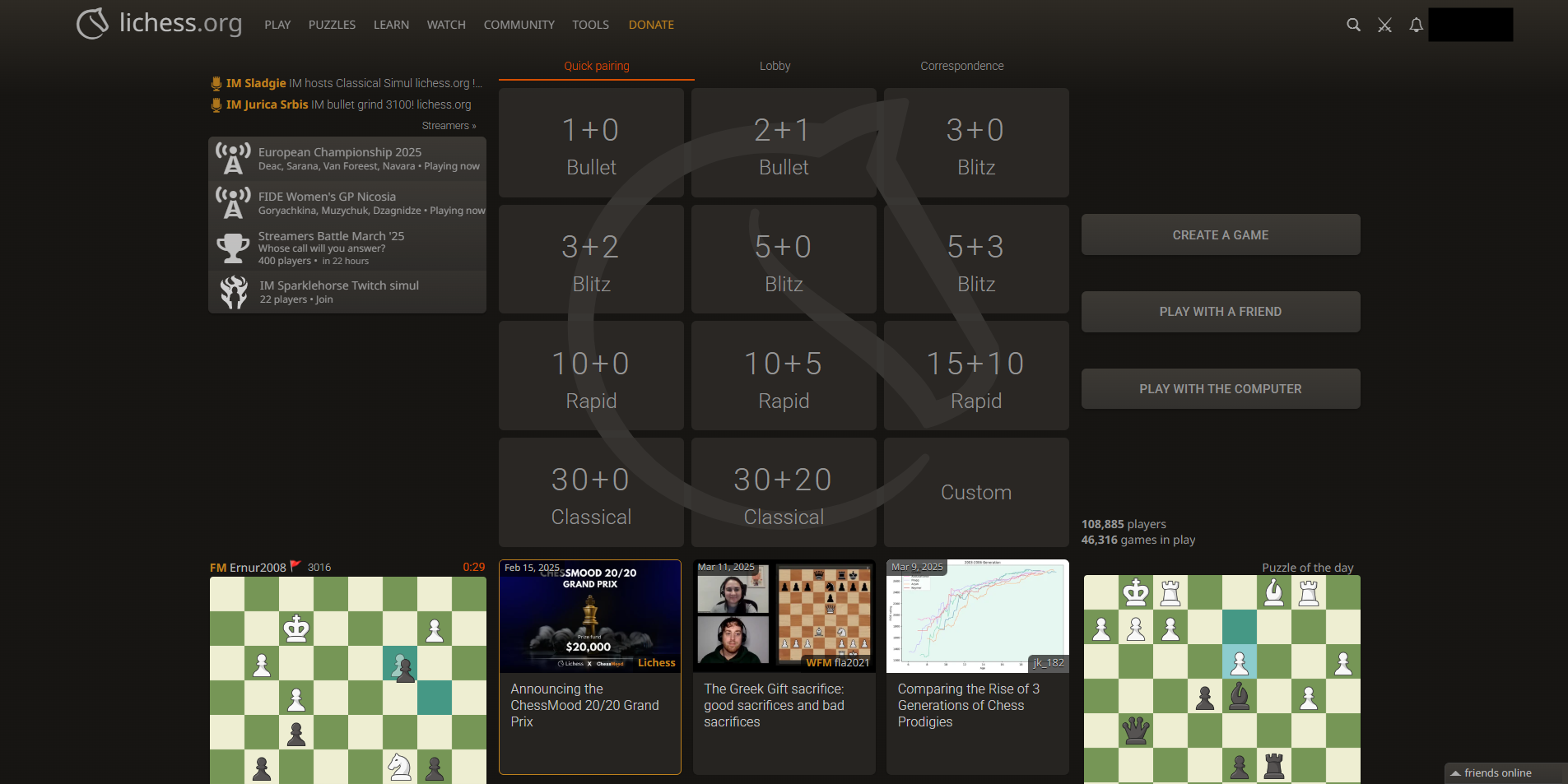 Chess.com은 부분 유료화로 서비스하고 있지만, Lichess.org는 모든 게 무료라는 점이 체스 사이트에서 양대산맥을 이루는 이유라고 생각합니다.