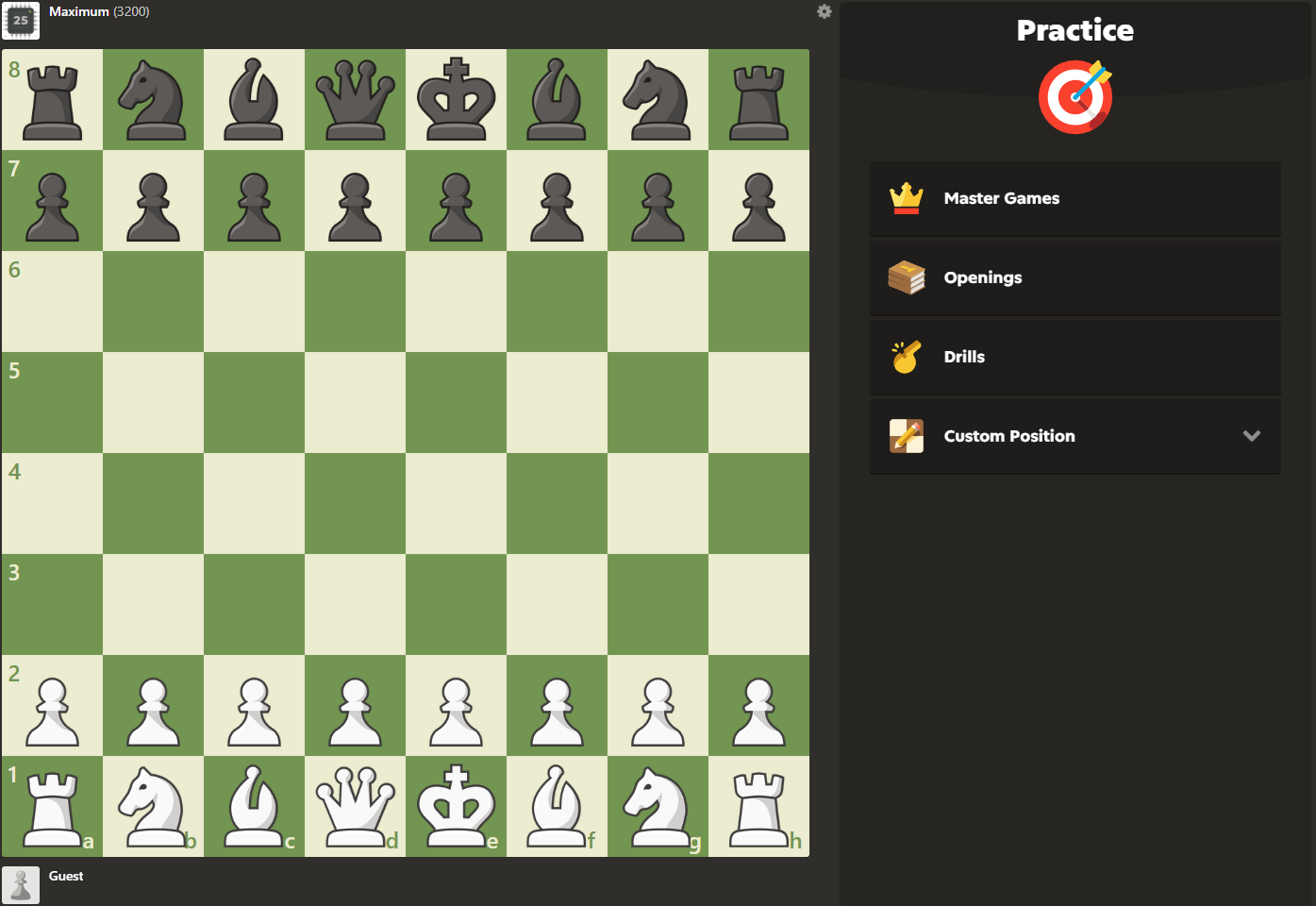 체스를 두다 보면 자주 마주하게 되는 기본적인 엔드게임을 연습할 수 있는 모드입니다. 킹과 폰 대 킹, 룩 대 킹 등 다양한 상황을 체계적으로 훈련할 수 있습니다. 실제 게임에서 시간을 줄이고 실수를 줄이기 위해 반복 학습하기 좋습니다.
