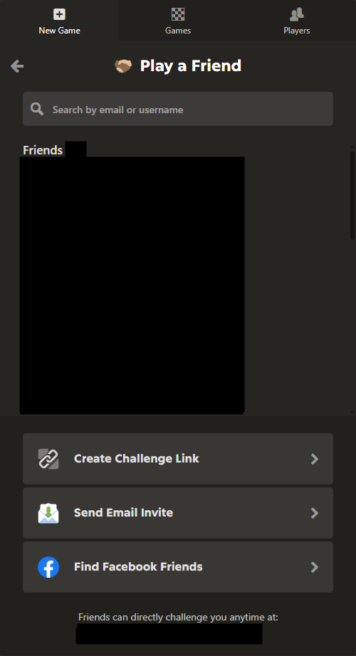 Chess.com에서는 친구를 선택해 대국하거나, 초대 링크 및 이메일을 통해 상대를 초대할 수 있습니다.