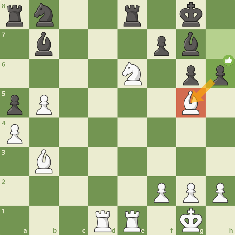 따라서 폰으로 되잡을 수 없기 때문에 그 자체로 기물 이득이 됩니다. 그리고 체크메이트 위협을 통해 기물 이득을 더 볼 수 있습니다.