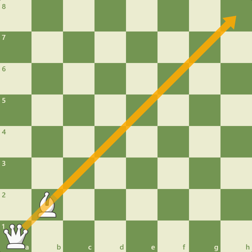 그런데 퀸은 룩과 비숍을 합쳐놓은 행마법을 가지고 있기 때문에 비숍이나 룩과 배터리를 만들어 사용할 수 있습니다.